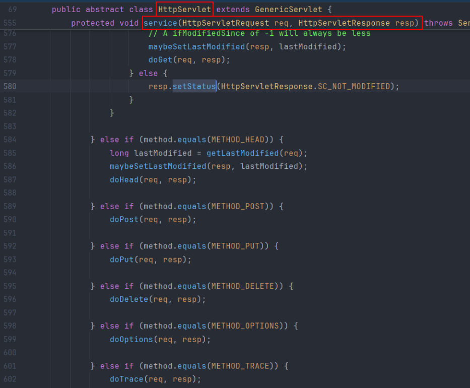 클라이언트 요청을 처리하는 핵심 메서드인 service()는 아래 두 파라미터를 받고 있다.