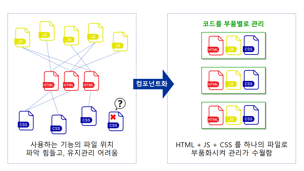 Vue.js 란 무엇인지 그리고 핵심 컨셉인데이터 바인딩(Data Binding)과 컴포넌트(Component)에 대해 간략히 정리해보자.Vue.js란??vue.js 자체는 프론트엔드. 즉, View와 관련된 처리들을 개발자 대신 관리해주는 라이브러리이다. 그래서 마치 jQuery를 이용하듯이 Script코드 몇 줄만 작성하면 곧바로 VUE를 적용할 수 있다. 공식 문서에서는 Progressive Framework라고 소개되는데, 이것은 처음 말한 것과 같은 간단한 방법으로 기존 프로젝트를 vue.js로 부분부분 점진적으로 또 쉽게 업데이트해나가며 전환할 수 있음을 의미한다.근데 여기서 프레임워크라는 단어가 나온다. VUE가 라이브러리이면서 프론트엔드 자바스크립트 프레임워크인 이유는 많은 확장 기능과 개..